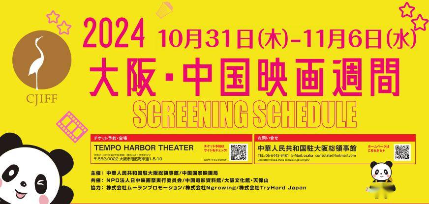 今日,2024“大阪・中国电影周”开幕。本届“中国电影周”由中国驻大阪总领事馆、中国国家电影局主办,日中电影节实行委员会、中国电影资料馆、大阪文化馆・天保山承办 。