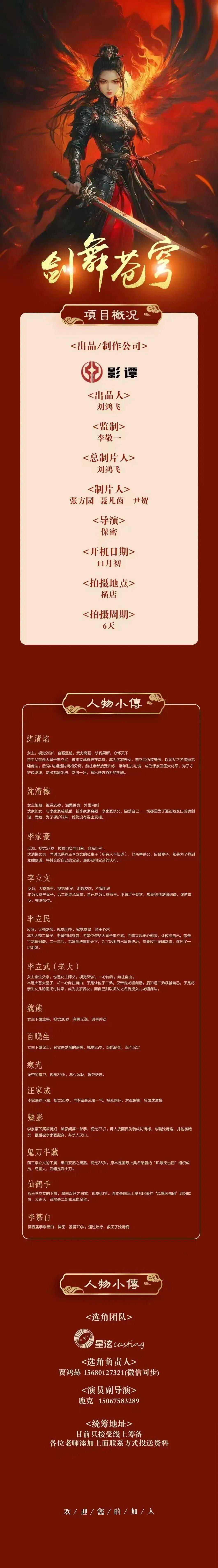 剧中角色众多,欢迎各大公司及独立演员投递资料。