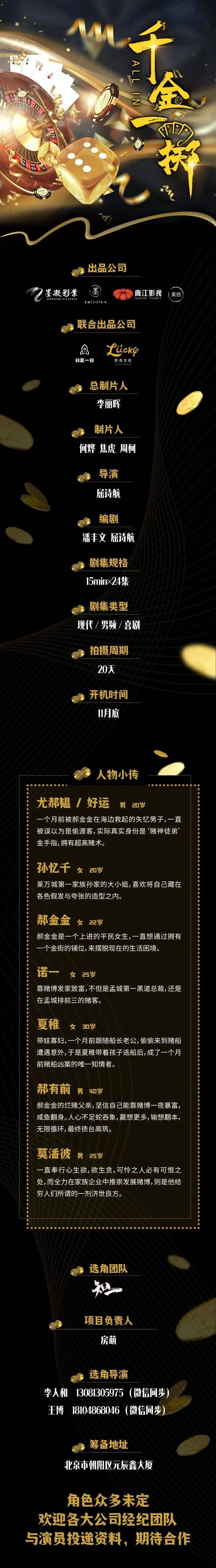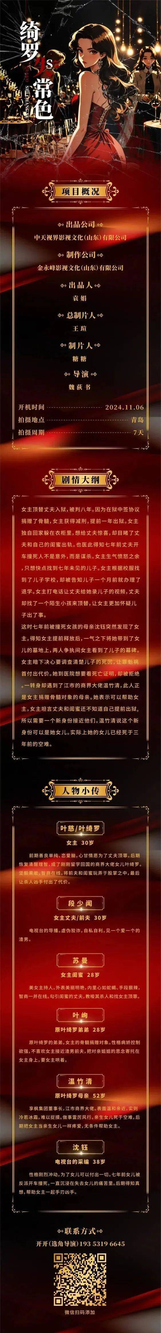 免责声明:戏客Seeker公众号(“本平台”)中全网组讯的信息、内容(“组讯信息”,包括但不限于影视项目名称、项目介绍信息、出品公司信息、导演信息、选角团队信息、拍摄相关信息、联系方式等)均来源于内容信息相关方提供或互联网公开信息。本平台不对组讯信息的真实性、准确性、完整性、及时性、关联性、适用性及安全性提供任何明示或默示的担保。请您谨慎参考或使用组讯信息,并确保您的人身、财产安全,本平台不对您使用或参考组讯信息而造成的后果承担任何责任。