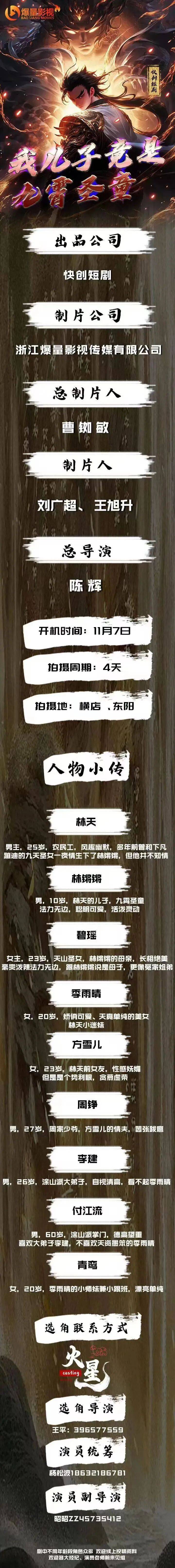 剧中不同年龄段角色众多,欢迎线上投递资料,欢迎各大经纪、演员老师前来见组。