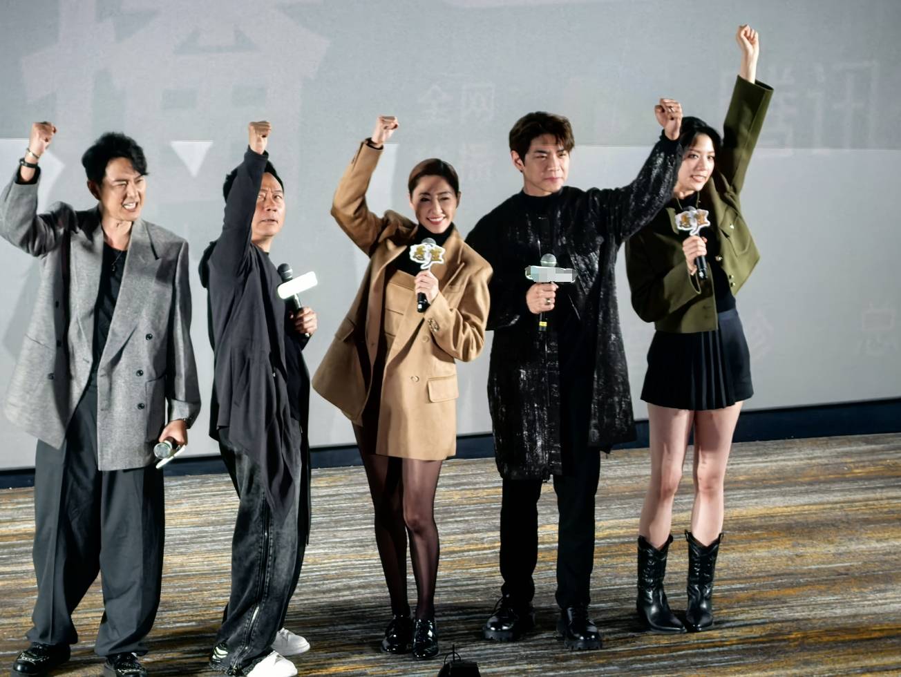 搜狐娱乐讯(胖部/图、文)10月29日晚,“巾帼枭雄”系列新作《巾帼枭雄之悬崖》在京举办线下看片会,监制方骏钊与演员黎耀祥、胡定欣、萧正楠、罗天宇、陈晓华等到场与观众互动。该剧已于10月21日开播并登陆在线平台。