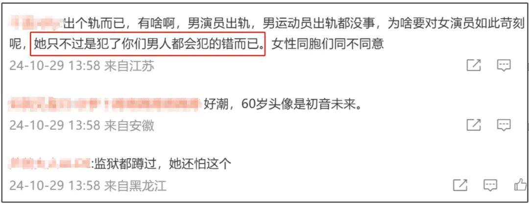 这里不是说大家的道德底线降低了,而是前面这几个男明星被曝出轨之后,没人正面道歉回应,但电影该上映的上映,节目该播的播,比赛也没耽误,可以说负面影响对他们似乎没有,那凭什么女演员就得被批判呢?