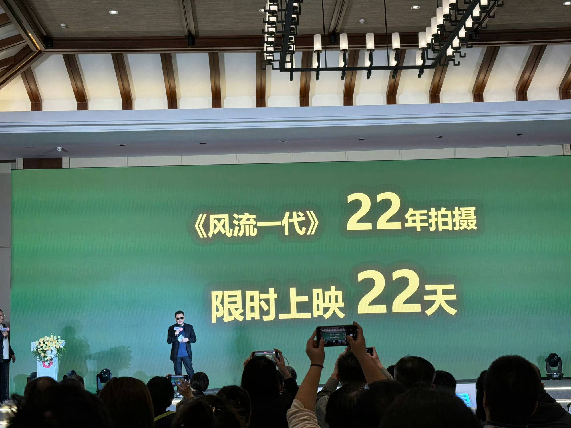 现场宣布,电影《风流一代》历时22年拍摄,将限时上映22天。用一个极具仪式感的观影仪式,跟本世纪头20年告别。对于想看这部电影的观众来说,22天足够了。 影片已定档11月22日全国上映。