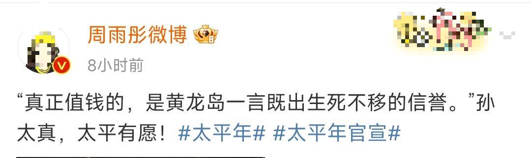 如今,《太平年》低调开机,周雨彤也并未邀请圈内好友助阵,只是借台词官宣了新剧,与以往的高调热情风格大相径庭。
