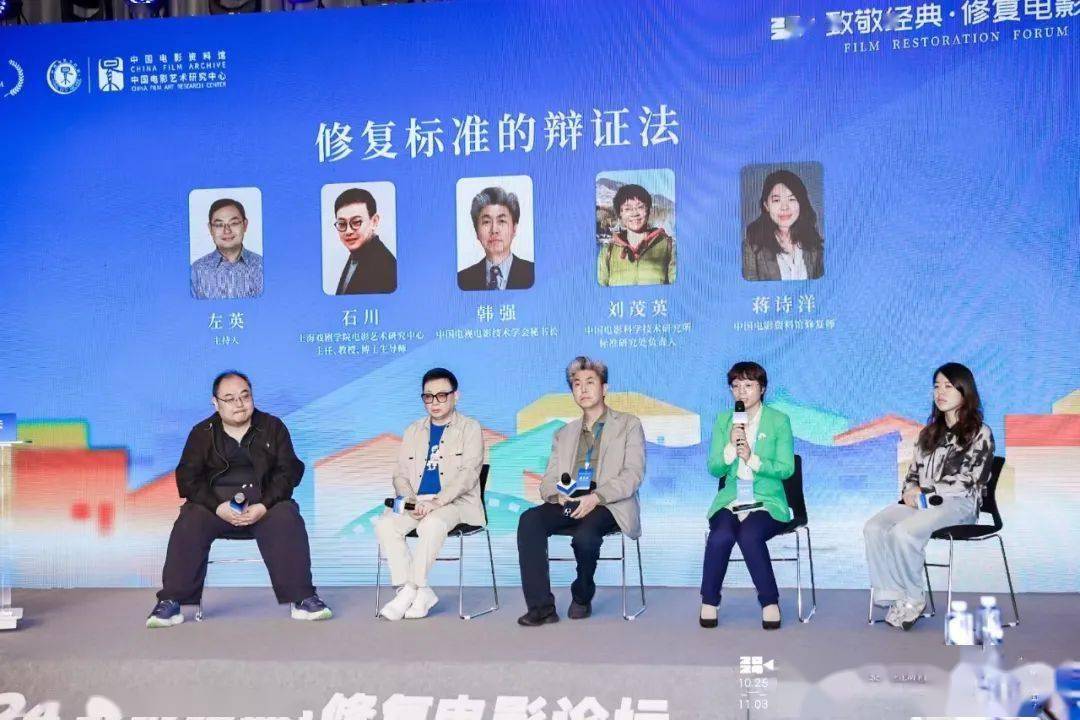 “修复标准的辩证法”沙龙由中国电影资料馆北京电影资料库副主任、教授级高级工程师、电影修复专家左英主持,上海戏剧学院电影艺术研究中心主任、教授、博士生导师石川,中国电视电影技术学会秘书长韩强,中国电影科学技术研究所标准研究处处长刘茂英,中国电影资料馆修复师蒋诗洋共同探讨了修复电影的标准化以及对电影艺术的要求。