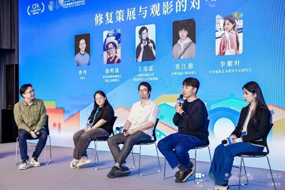 “修复策展与观影的对话”沙龙由中国电影资料馆公共事业部副主任沙丹主持,菲林卷观影团创始人、艺联上海群群主徐明晨,上海电影学者王培雷,苏州电影自媒体博主常江源、中国电影资料馆研究生李紫叶从观众的角度出发,畅谈影迷与修复电影之间的关系。