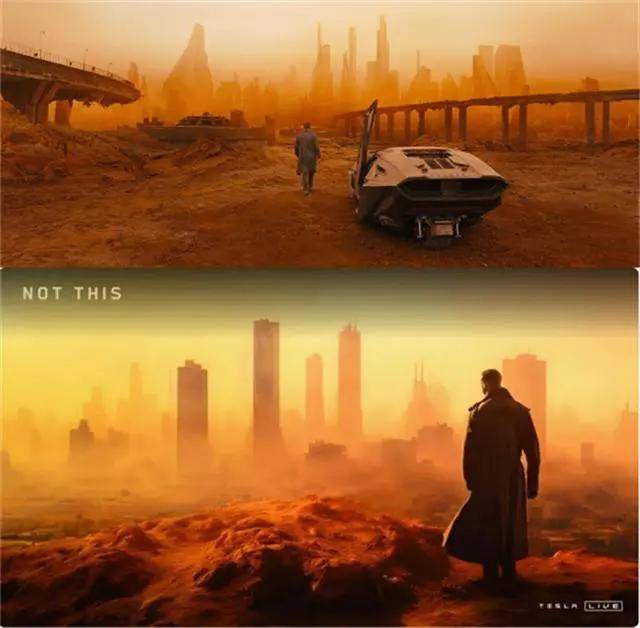 《银翼杀手2049》剧照(上)和特斯拉发布会宣传图(下)
