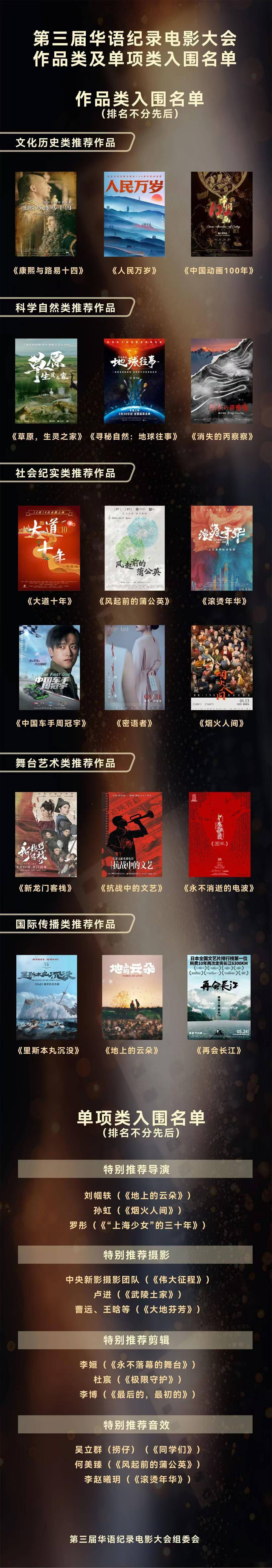 本届大会的纪录电影征集推荐活动共收到46部影片。经推荐委员会初选,等18部影片入围作品类推荐,12部影片入围单项类推荐。在26日晚举行的“金海鸥”推优盛典中,将逐一揭晓推荐结果,并宣布年度特别贡献纪录电影机构。“印象珠海”短视频特别推荐作品也将同时揭晓。