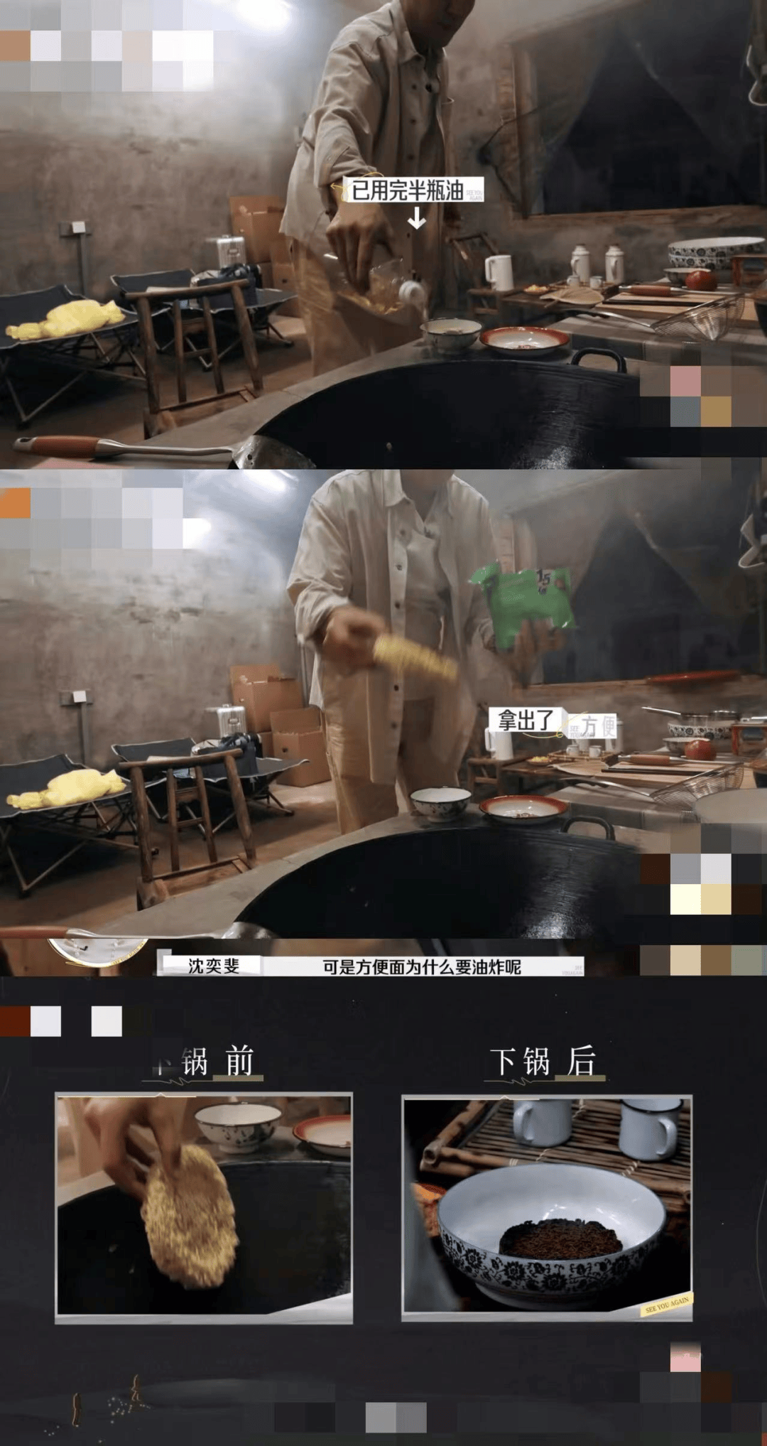 杨子竟然将方便面直接放进油锅里炸,得到两面焦黑的碳化方便面后他也完全不认为是自己的问题,甚至还继续往锅里加水,最后整个锅都烧起来了,杨子还把火一勺一勺盛到碗里。