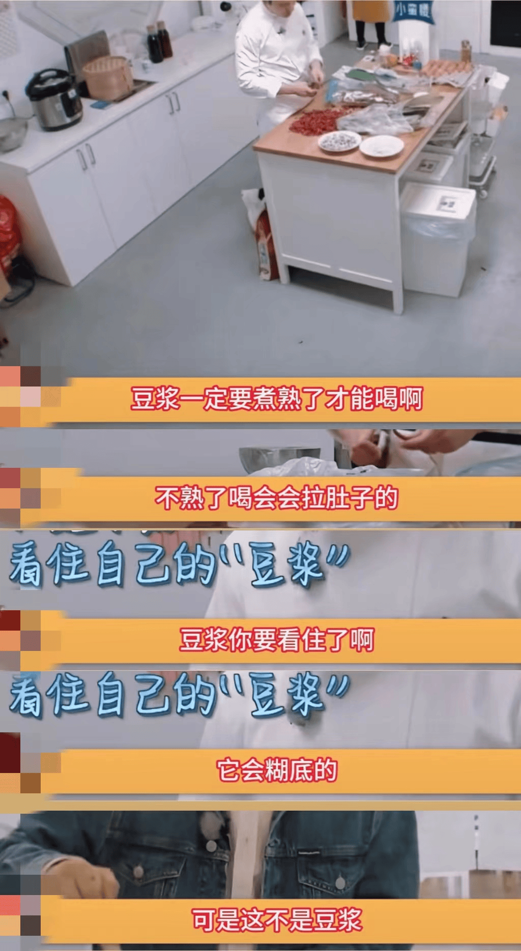 在节目中,王俊凯其实在煮凉虾,黄晓明却对他说:“豆浆你要看住了,他会糊底的,一定要煮开煮熟。”而王俊凯只敢小声反驳一句:“可是这也不是豆浆。”