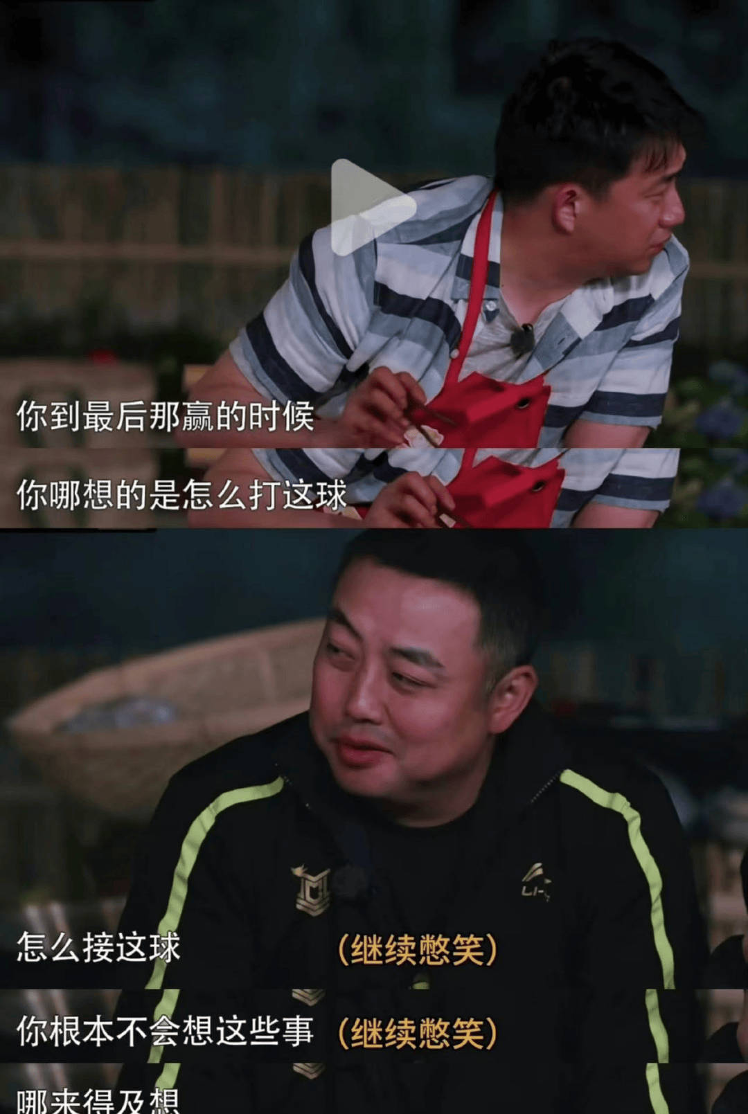 黄磊自以为很懂地说:“你说打乒乓球的就比谁乒乓球打得好啊?绝对不是,它比心理素质,甚至还得比点运气,比点对世界的理解,比点对自己感情生活的方式。你的心态,你的信仰,这些东西其实已经跟技巧没啥关系了。”