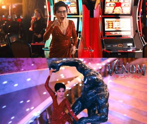 对了,最后还要提一嘴,系列前两部中人气配角陈太太(佩吉·陆 饰)的出场本来该是影片的亮点之一,结果《毒液3》为了扣住”最后一舞“的题,强行让共生体现出原形与陈太太跳舞——难道毒液不清楚这么做会点亮”编码“,招致反派异噬体的追杀吗?为了推进情节进展主动让毒液自杀式暴露,堪称全片最没有智商的桥段。