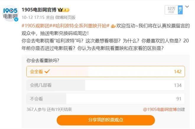基于我们前期多平台线上调查的结果,有8至9成的“哈迷”表示一定会买票走进影院重温《哈利·波特》系列。