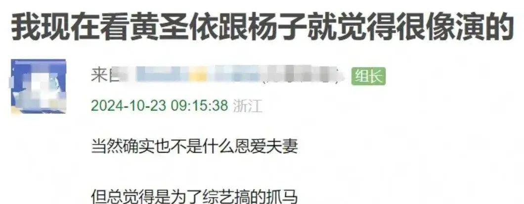 因为该网友爆料,自己8月份遇到黄圣依和杨子录制节目的时候,发现两人现场中相处起来轻松愉快,不像是感情破裂的夫妻。