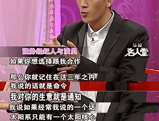 而和周星驰解约之后的黄圣依便成为了丈夫杨子公司旗下的艺人,杨子一开始就表明了他对于黄圣依来说就是“老板”,他说的话就是命令,太阳系只能有一个核心,那就是他。