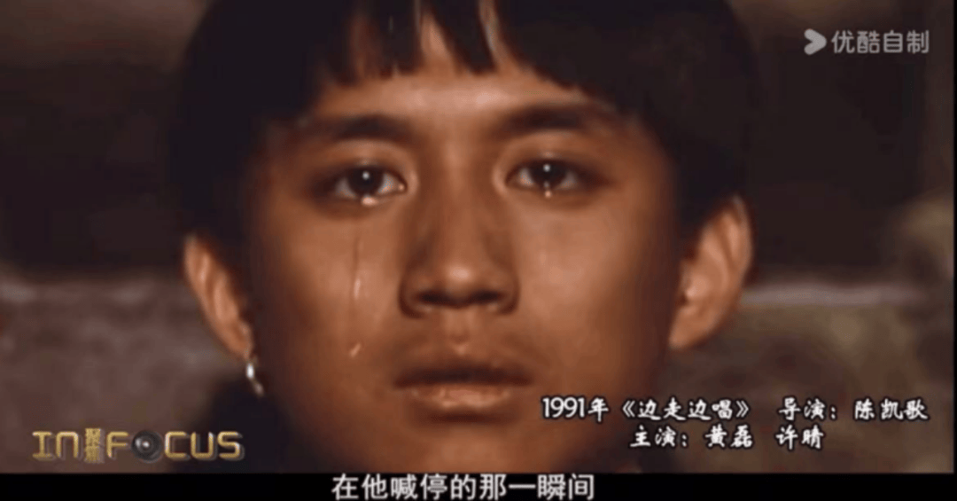 第一次出现在荧幕上的黄磊青涩又稚嫩,一双明亮的眼睛却演出了盲人的神韵,直勾勾地盯着前方,慢慢滑落一滴泪。