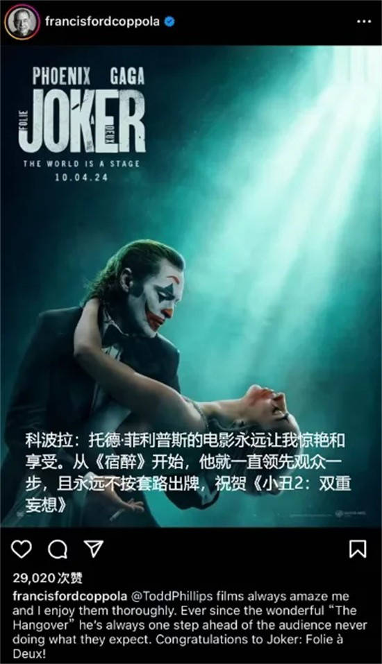 在《小丑2》的众多外媒评价中,有一条格外有趣:“这部片子像是花了两亿美金来宣告:有些电影就不应该拍续集!用一部长片来完成这种讽刺,小丑究竟是谁?”