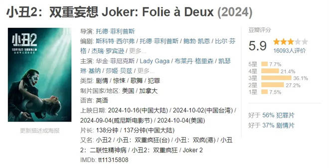 《小丑2:双重妄想》为什么没能令大多数观众满意?“神作”续集到底有多难拍?