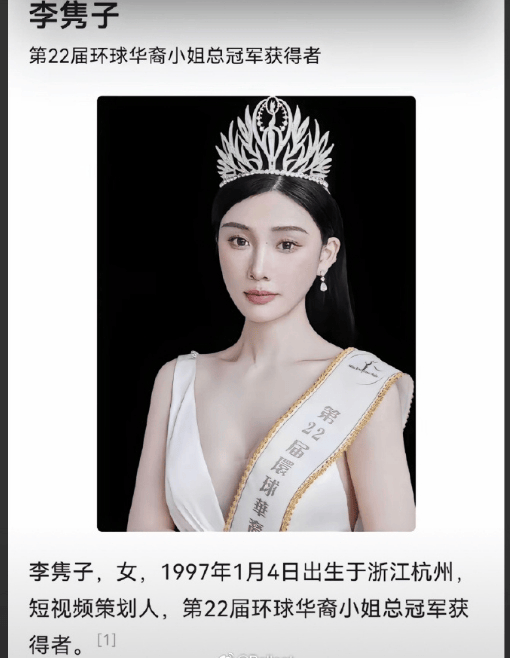 李隽子长得十分漂亮,完全配得上【肤白貌美大长腿】的形容,还曾获得过【环球小姐冠军】。