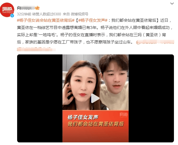 不过杨子的侄女在开直播时,却力挺【三妈黄圣依】,直言让她做自己,会一直站在她的背后。