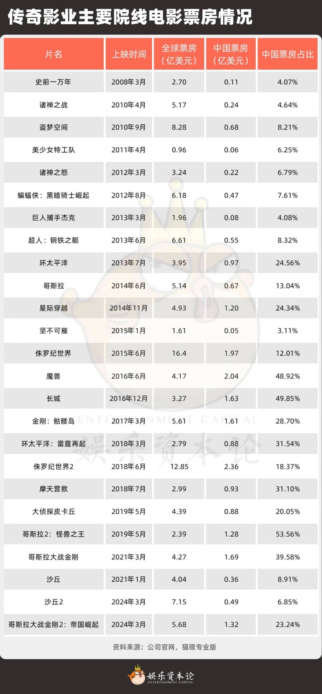 第一条路,继续争取中国市场。在做“中仓片”方面,传奇有自己的IP和能力。2016年的《长城》和《魔兽》的中国市场占比近50%,但近几年的哥斯拉IP下的各个怪兽电影在中国持续跑出亮眼的成绩,则更能作证传奇在中国市场的能力。