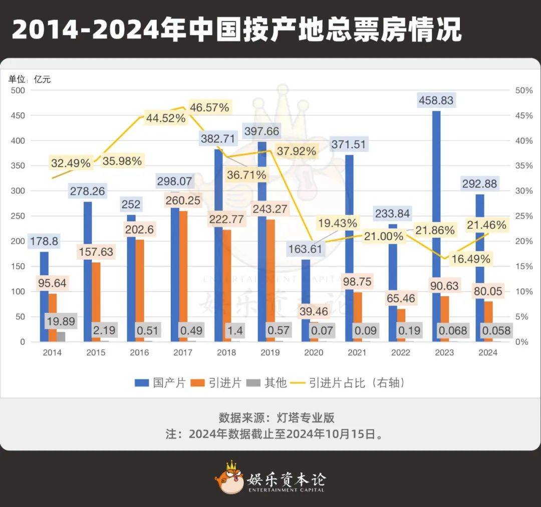 平均票房方面,由于引进片经过严格筛选,而国产片基数相对较大,引进片的平均票房领先于国产片。但差距正在缩小——这同样表明,进口片正在失去优势。