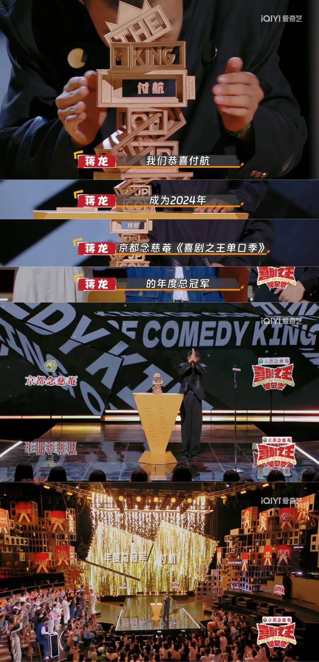 2024年10月19日,综艺《喜剧之王单口季》总决赛第二轮圆满收官。脱口秀演员付航获得392票,成为2024年《喜剧之王单口季》年度总冠军。