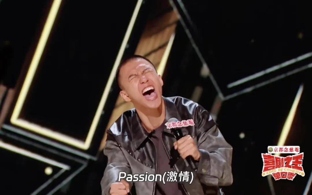 他的面部表情也很夸张,综述瞪大双眼、翻出眼白,龇牙咧嘴地大喊“passion”!