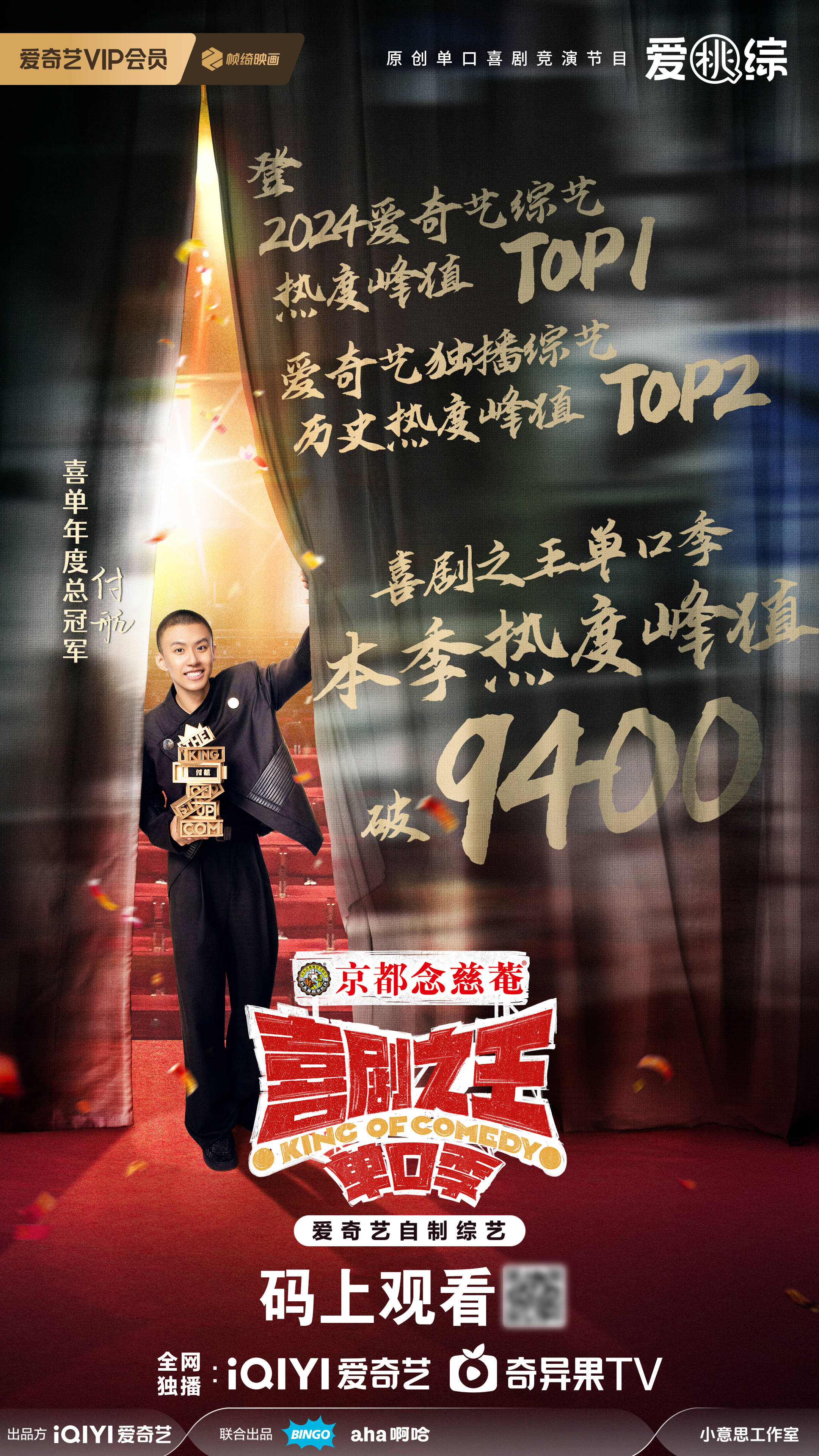 10月19日,由爱奇艺出品的原创单口喜剧竞演节目《喜剧之王单口季》迎来总决赛。经过激烈角逐,最终付航获得年度总冠军。收官之战是竞演更是狂欢,在浓厚过年氛围中,整场比赛爆笑感动并存,呈现出一场无与伦比的表演。总决赛播出后,节目热度突破9460,登2024爱奇艺综艺热度值TOP1,爱奇艺独播综艺历史热度峰值TOP2,2024最热综艺当之无愧。