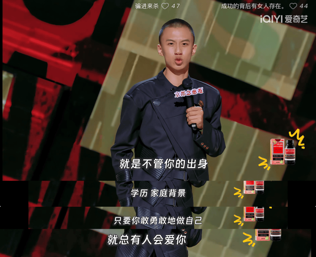 “面对说我废物的嘲笑,我只能自信起来”、“不管你的出身、学历、家庭背景,只要你敢勇敢地做自己,就总有人会爱你”,当付航在总决赛谢幕演出里讲出这段浪漫告白,那分明是一封写给所有如曾经的付航一样迷失自我的普通人的情书。