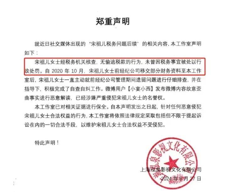 因为前段时间,宋祖儿可是出面回应了自己偷税漏税一事。