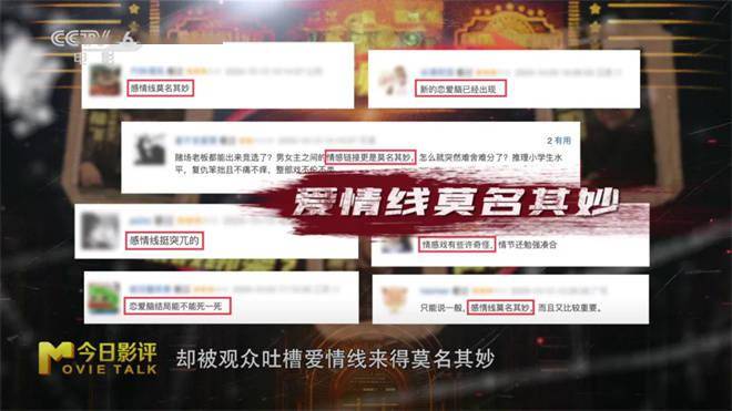 一个吐槽的“重灾区”就是男女主角之间的情感爱情线莫名其妙,有网友称“对于男女主角之间的羁绊铺垫不足,导致后面的感情线看起来十分突兀”,观众还没反应过来,角色就先爱上了,进度堪比坐火箭,甚至有网友调侃说“新的恋爱脑已经出现了”。