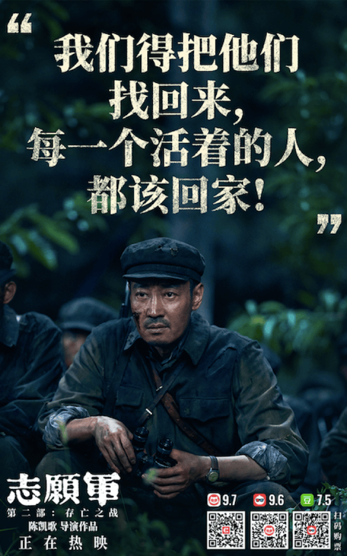 一个个丰满立体的人物形象呈现在我们面前,战争不再是冷冰冰的叙述,而是关于一个个有血有肉的生命,志愿军战士们不仅是战场上的勇士,更是有着丰富情感与内心世界的普通人,而“存亡之战”,是关于他们的存亡,也是我们的存亡,是他们用不平凡,换来了我们今天的岁月静好。