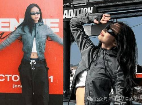 照片中,Jennie穿着短款夹克和宽工装裤,这一身造型舒适又不失力量,展现了Jennie独特的时尚品味,短款夹克低调的廓形与宽松版型的工装裤完美搭配,营造出别致又时尚的氛围。