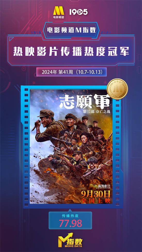 10月7日-10月13日,“电影频道M指数”热映影片传播热度榜前6位依次为: