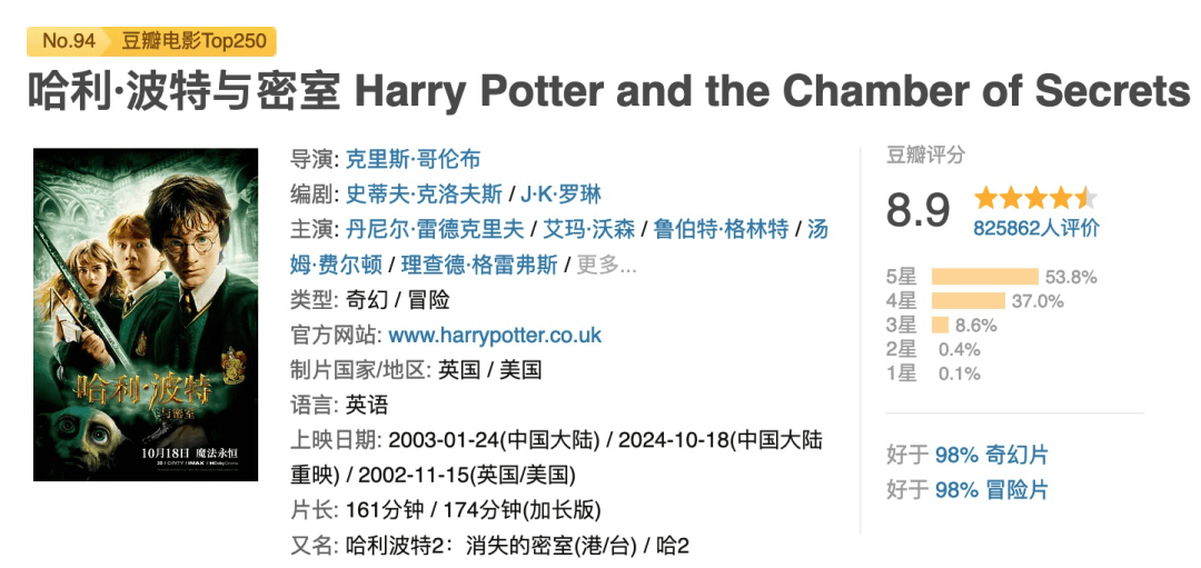 重映的“哈利波特”也有4700万票房的收入,而且预计总票房可以过亿,作为重映影片,这个票房成绩,其实还是挺不错的。