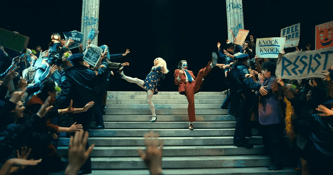 影片延续前作剧情,故事从“小丑”亚瑟(华金·菲尼克斯 饰)被捕后展开,他在狱中等待着审判日的到来。然而,就在亚瑟与自己的双重人格缠斗之时,他不仅偶遇真爱,甚至还释放出一直潜藏在内心的旋律。