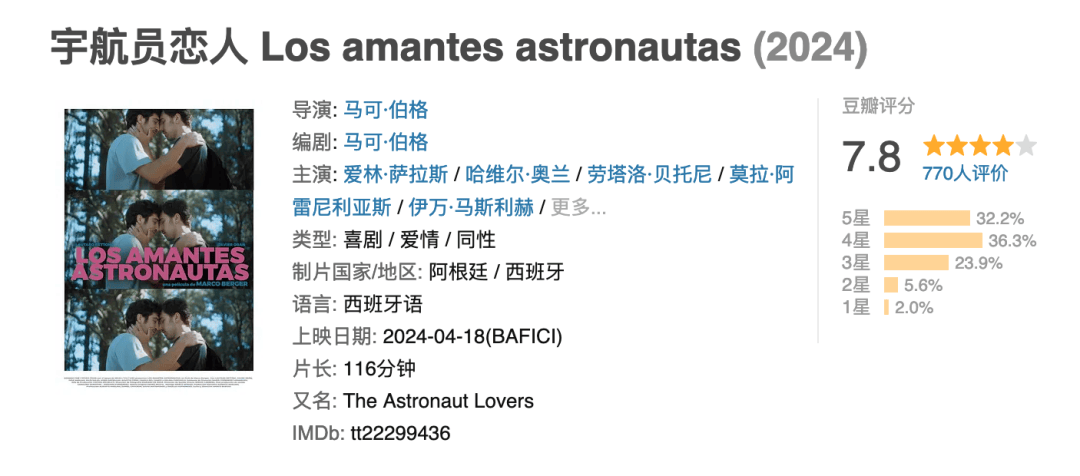 阿根廷导演马可·伯格的新片,他一直擅长执导这种同性题材,而且评价都还不错,这次同样在豆瓣收获高分评价。