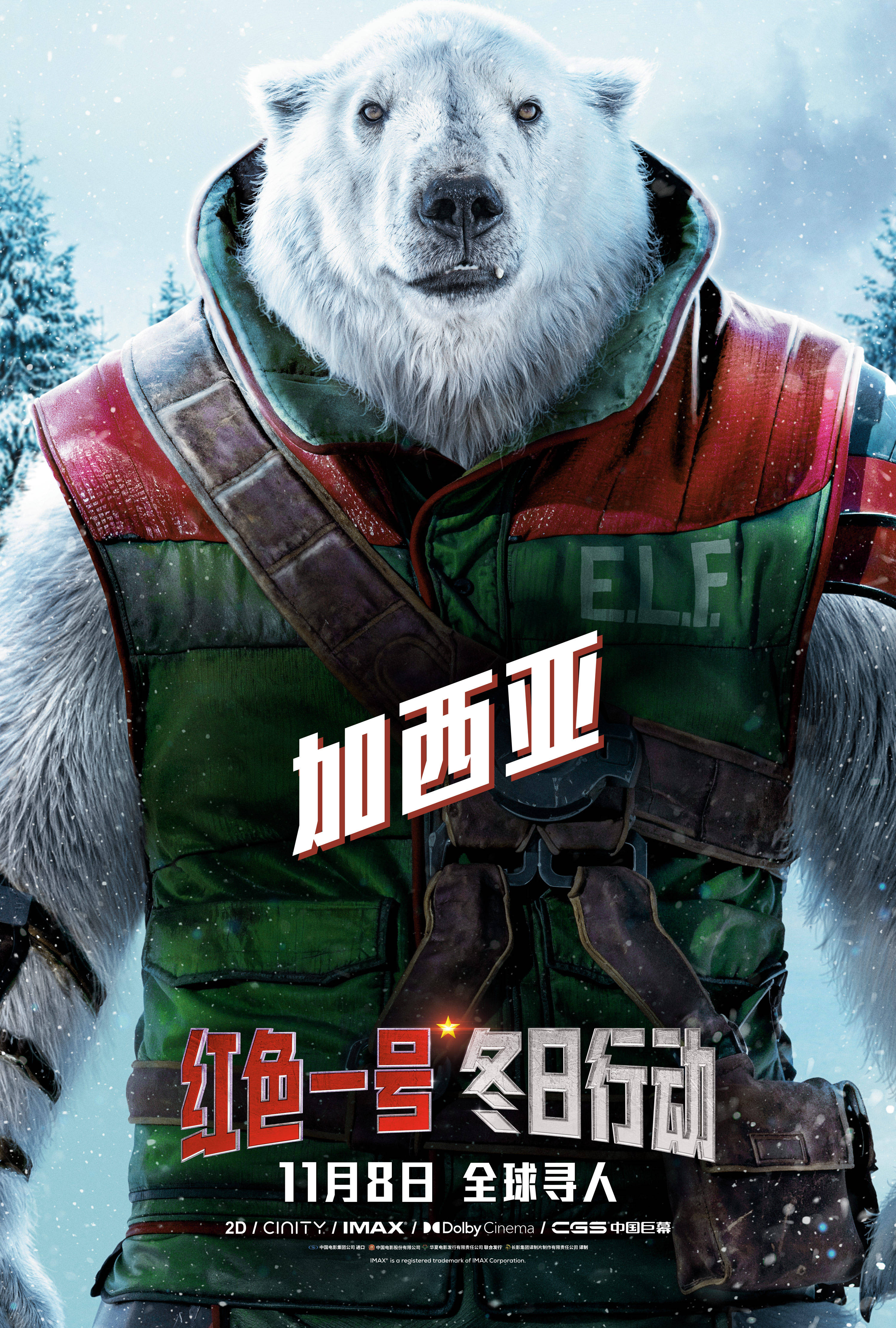 《红色一号:冬日行动》今日发布8张中文角色海报,与圣诞老人“红色一号”密切相关的8位角色闪亮登场,风格迥异彰显人物特色,看点十足。北极安保主管卡勒姆·德雷夫特(巨石强森 饰)、全世界最臭名昭著的赏金猎人杰克·奥马利(克里斯·埃文斯 饰)、守护节日秘密的女强人佐伊·哈洛(刘玉玲 饰)、圣诞老人尼克(J·K·西蒙斯 饰)蓄势待发,已为这场最重要的年末狂欢做好了战斗准备;北极熊加西亚、羊头人身的克兰普斯(克里斯托弗·海维尤 饰)、身份成谜的格瑞娜(琪兰·席普卡 饰)、圣诞夫人(邦妮·亨特 饰)则更凸显影片备受观众喜爱的奇幻元素。