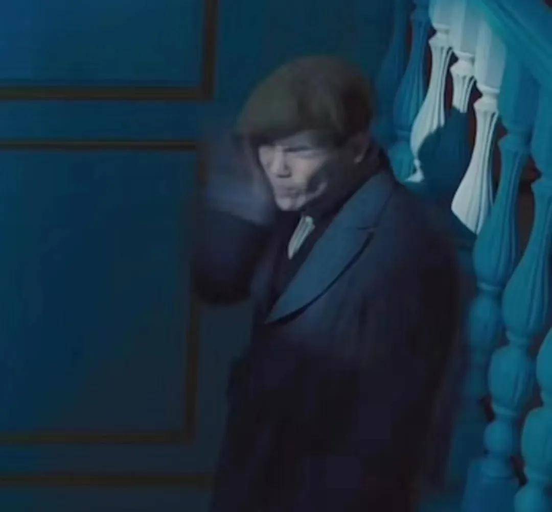 郭碧婷饰演的情人跟他跳舞,他瞪着个大眼睛加大鼻孔。