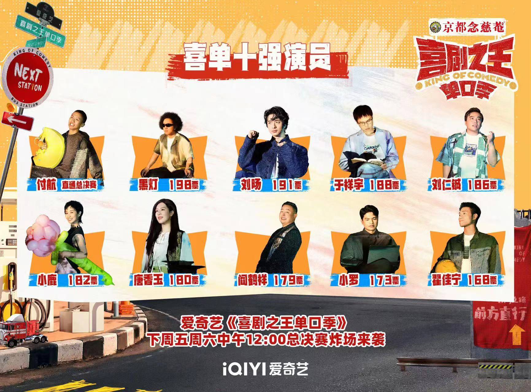 10月12日,《喜剧之王单口季》半决赛落下帷幕,年度十强名单出炉。本赛段虞书欣惊喜加盟,成为新晋气氛组组长。除金句爆梗外,本周火热氛围再创新高,喜单“十三太保”版《YES!OK!》更是刷屏全网。最终,黑灯、于祥宇、刘仁铖、刘旸、小鹿、唐香玉、阎鹤祥、小罗、翟佳宁顺利闯进决赛圈,与直通总决赛的付航相聚,角逐年度总冠军的桂冠。