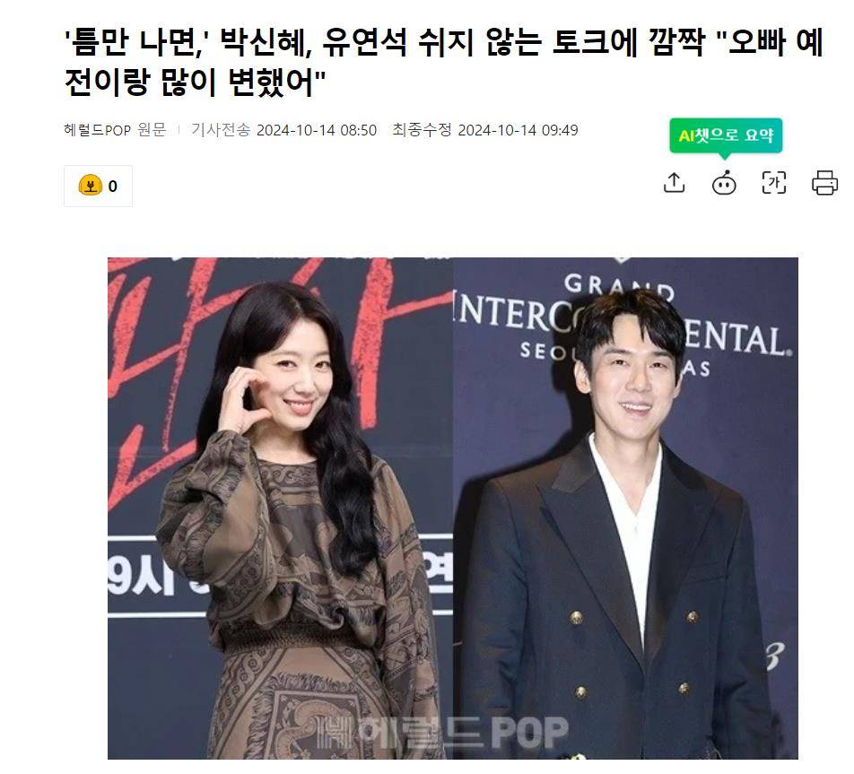 对于,韩国知名女星,演员朴信惠,现身刘在石综艺节目,与柳演锡展现情侣般化学反应,大家怎么看呢?