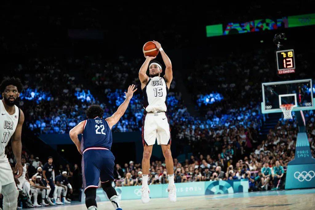 当然不要忘了,这个夏天,布克可以说是让不少人对他的球风有所改观。在巴黎奥运会上,布克6场比赛全部首发,场均出场22分钟,有11.7分2.7篮板3.3助攻,正负值为 13,三项命中率56.8%、56.5%、77.8%。
