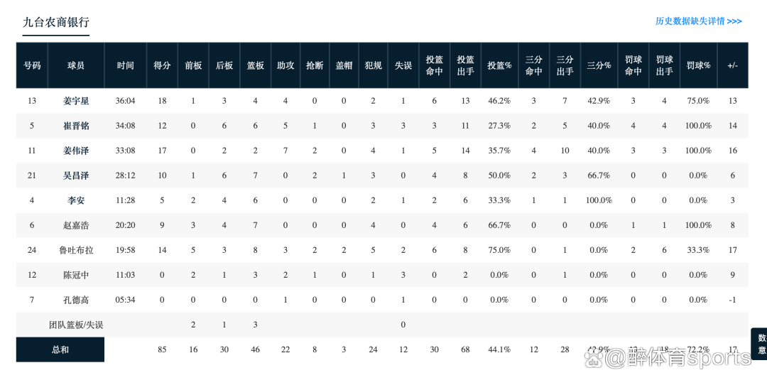 面对外援奈特领衔的浙江方兴渡,吉林东北虎5人得分上双,崔晋铭12分6篮板5助攻,姜宇星18分4篮板4助攻,姜伟泽17分7助攻,吴昌泽10分7篮板,鲁吐布拉14分8篮板,赵嘉浩9分7篮板。