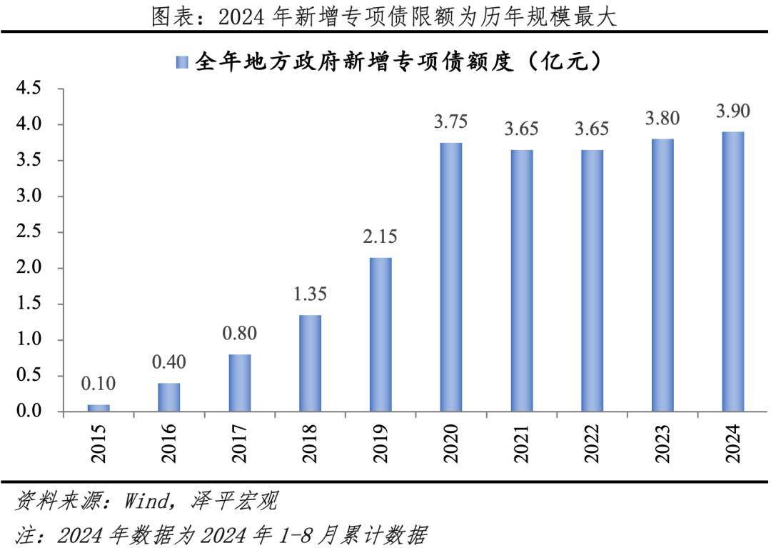 今年专项债发行力度不小,但发行节奏偏慢,主因范围受限、机制不全、管理不善。2024年安排新增专项债券 3.9万亿元,是历年来规模最大的一年,但 前 7个月发行进度偏慢,进度仅约 45.5%,低于过去五年平均水平。一是专项债对底层项目收益率有一定要求,很多新基建收益率无法保证,导致缺项目 ;二是有的项目需要地方配套资金,在财政资金紧张的背景下地方政府缺少配套能力;三是项目管理制度不健全,例如多头监管,项目遇到堵点时容易停滞、已到账的资金空转等。