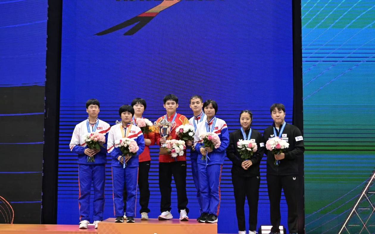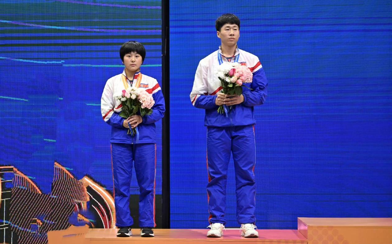 但也有不开心的,可能还没有从失利的情绪中走出来,亚军领奖台上的李正植金和琴英都不开心,一丝笑容也没有。其实他们也有机会获得胜利的,但是没有把握住,是在自责吗?尤其这个小妹妹金琴英刚打完和中国香港名将杜凯琹的女单半决赛没有休息就上了混双决赛的赛场,她并没有因为女单晋级决赛而高兴,反而因为混双失利不开心,看来还是求胜欲很强的小姑娘啊。不过这位小姑娘感觉挺耐看也挺漂亮,成绩也不错,以后要好好重视起来了。