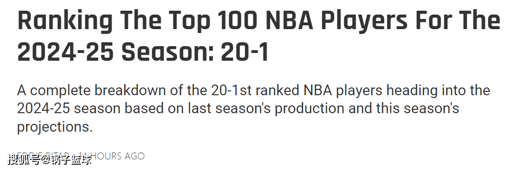 NBA新赛季已经开始,各支球队正在进行季前赛的争夺,美媒《fadeawayworld》也适时评选出新赛季TOP20球星,其中詹杜库三名老一代超巨均无缘前5,东契奇屈居第2,榜首实至名归。