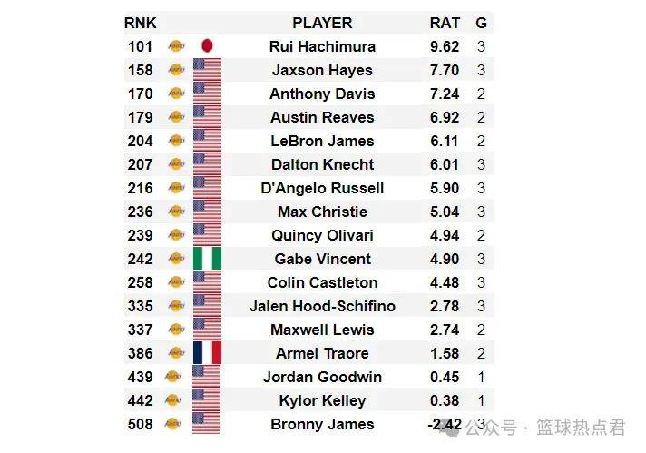 美媒HoopsHype根据目前为止季前赛的总体表现,为湖人队内各球员的综合表现给出了评分,布朗尼的评分是-2.42,毫无悬念的垫底。他也是湖人队内唯一一个评分是负分的球员。