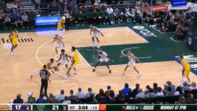 利用海斯的掩护,文森特很好的压缩了雄鹿的防线。重点是在和波蒂斯形成小打大占有优势下并没有贪功,而是选择了传给外线处于空位得分机会更好的克里斯蒂。