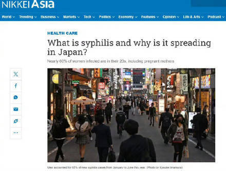 据《日经亚洲》6日报道,日本新增梅毒感染病例在过去3年连续创下历史新高,而2024年这一数字可能还会再破纪录。 日媒援引日本国立传染病研究所数据称,该国梅毒感染病例从2021年开始连续快速上升,2023年新增梅毒感染病例已飙升至14906例。截至今年9月15日,日本2024年新增病例10162例,按照当前增速,日本新增梅毒感染将在2024年再创新高。 今年上半年新增病例数据显示,男性约占所有新增梅毒病例的65%,年龄范围从20多岁到50多岁不等。在新增的女性感染者中,近60%年龄为20多岁。为了应对梅毒病例激增的问题,日本东京市政府宣布自2025年加强对当地色情行业的监管,延长歌舞伎町检测点的运营时间,呼吁从业者加强检测。(环球时报)